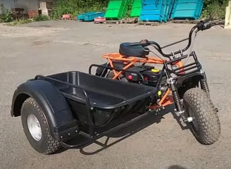 - Возможность перевозки различных грузов благодаря боковому прицепу и корыту.